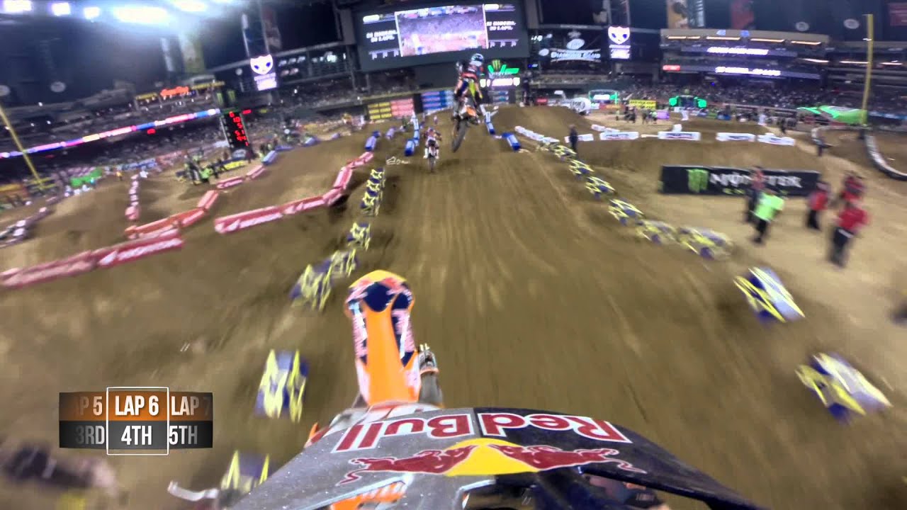 Watch Ken Roczen and Justin Barcia battle during the Main Event at the 2nd Round of the 2014 Monster Energy Supercross in Phoenix, AZ