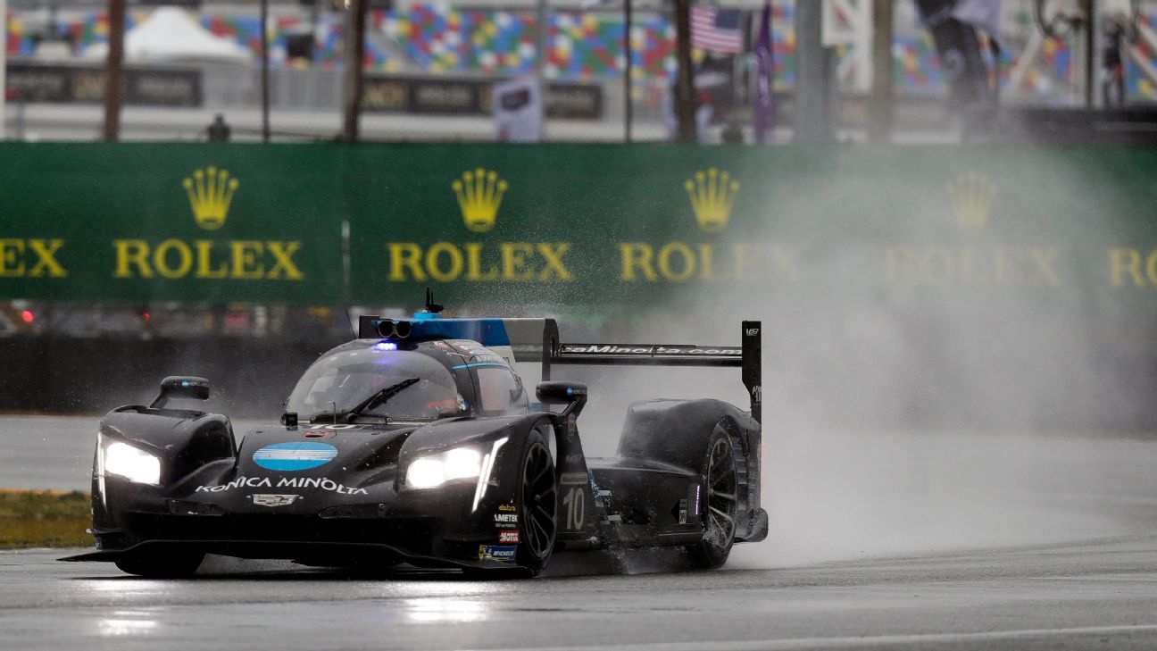 Alonso drove the Cadillac DPi to the lead in each of his three stints at Daytona International Speedway. His final pass was of Felipe Nasr, who missed a turn and drove through a deep patch of water as Alonso stayed on course and took over the lead.